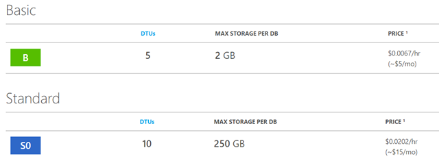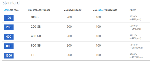 Untuk perbandingan berdasarkan harga layanan, SQL Azure menawarkan banyak alternatif pilihan berdasarkan kebutuhan. Sebagai contoh untuk layanan paling dasar (basic) dengan tipe single database dan ukuran database sampai dengan 2GB, harga yang ditawarkan adalah mulai dari $5 per bulan. Harga akan bertambah secara signifikan berdasarkan spesifikasi server dan kapasitas layanan yang ditawarkan. Harga paling mahal untuk model elastic database dan kapasistas sampai dengan 1TB yaitu $2700 per bulan.
