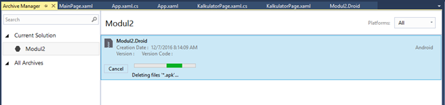 2. Setelah langkah ini dikerjakan maka Visual Studio akan menyiapkan semua file yang nanti akan dikompilasi menjadi file .apk.