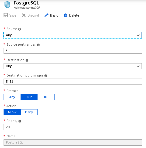 Setelah database PostgreSQL terpasang pada Windows Server 2016, langkah selanjutnya adalah membuka port 5432 pada Azure VM dan pengaturan firewall pada Windows Server 2016.