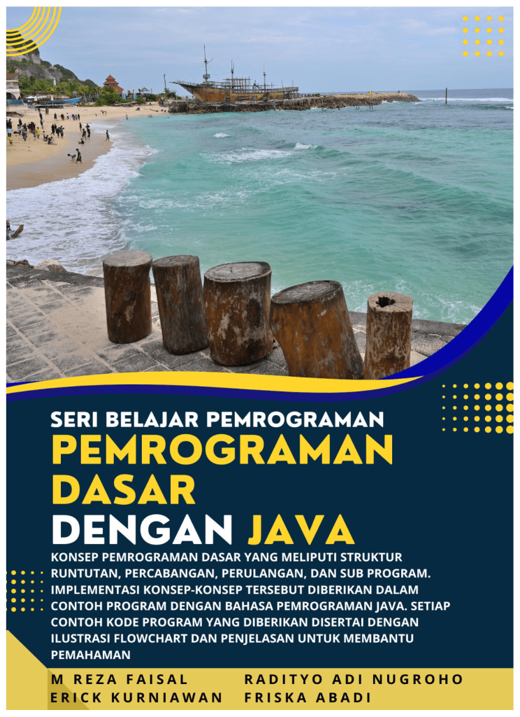 Buku ini memberikan konsep pemrograman dasar yang meliputi struktur runtutan, percabangan, perulangan, dan sub program atau dekomposisi. Implementasi konsep-konsep tersebut diberikan dalam contoh program dengan bahasa pemrograman Java. Kode-kode program yang diberikan disertai dengan ilustrasi flowchart dan penjelasan untuk membantu pemahaman pembaca.