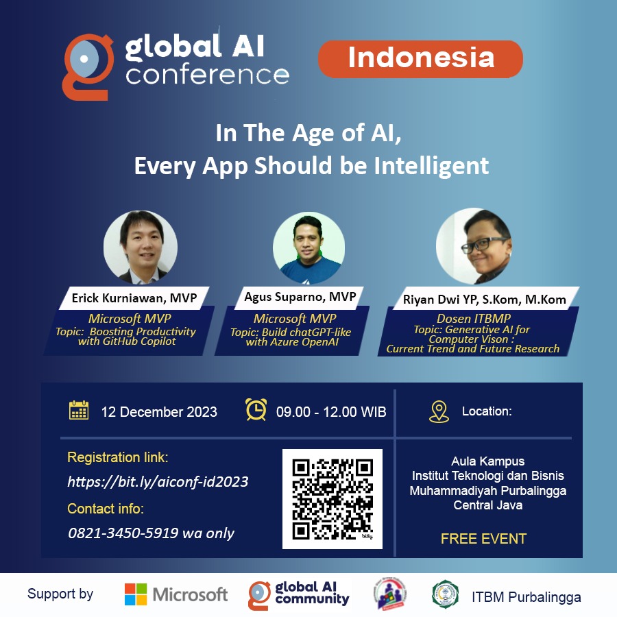 Pada tanggal 12 December 2023, telah dilangsungkan acara Global AI Conference 2023 Region Indonesia di Universitas ITBM Indonesia. Acara Global AI Conference 2023 ini didukung oleh komunitas Microsoft User Group Indonesia (MUGI) dan Microsoft Indonesia. Acara ini diikuti oleh kurang lebih 50 orang peserta secara offline dan online.