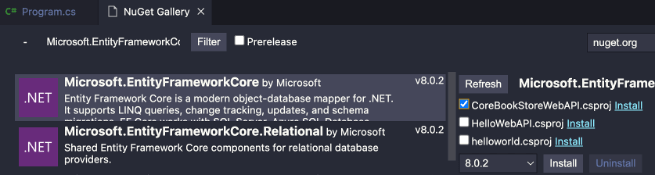Berikut adalah library yang perlu ditambahkan untuk bekerja dengan EF Core.