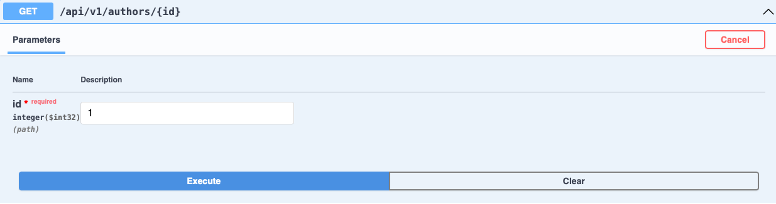 Contoh berikut akan menunjukan bagaimana cara menggunakan method GET dengan parameter Id yang mengembalikan satu data author.