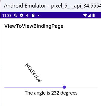 Anda dapat mendefinisikan data binding untuk menghubungkan dua view pada satu halaman yang sama. Caranya adalah menggunakan BindingContext, dan menambahkan x:Reference pada xaml markup. Berikut adalah contoh penggunaan view-toview binding antara label dan slider.