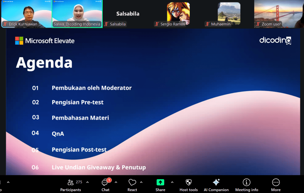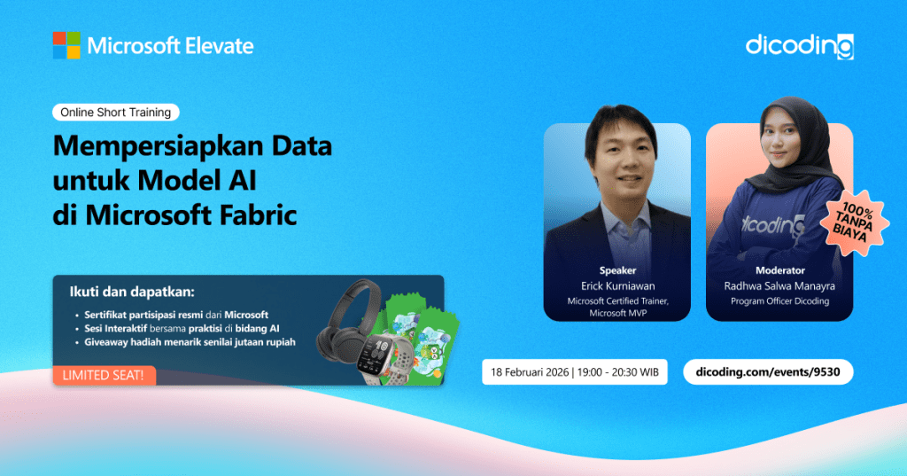 Saya berkesempatan untuk membawakan sesi Microsoft Elevate Training Center (METC) berjudul “Mempersiapkan Data untuk Model AI di Microsoft Fabric” yang membahas pentingnya peran data sebagai fondasi utama keberhasilan implementasi Artificial Intelligence (AI). Dalam sesi ini, saya menekankan bahwa kualitas data—yang bersih, terstruktur, dan relevan—menjadi faktor penentu agar model AI mampu menghasilkan insight yang akurat dan bernilai bagi bisnis. Melalui pendekatan praktis, peserta diajak memahami proses end-to-end data preparation menggunakan Microsoft Fabric, mulai dari data ingestion, transformasi, hingga penyusunan data yang siap digunakan untuk analisis dan training model AI.